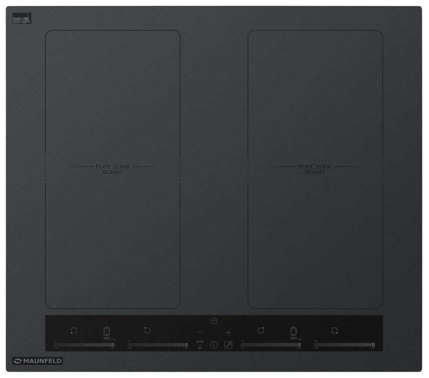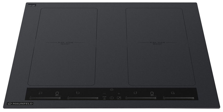 Совместимость с посудой любого размера и формы Flex Zone, 2 "моста" попарно объединенные левые и правые зоны нагрева.