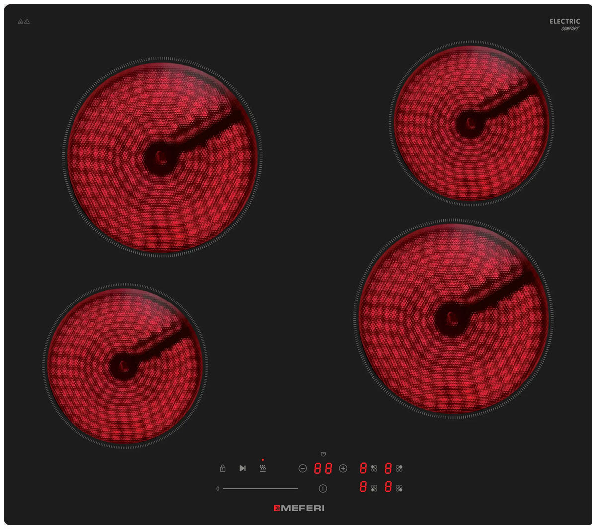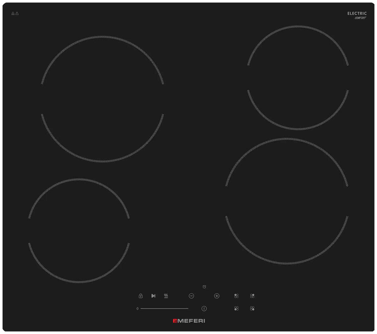 MEFERI MEH604BK COMFORT – это просторная и функциональная варочная панель, которая станет настоящим помощником на кухне. С четырьмя конфорками, каждая из которых имеет свои диаметр и мощность, вы сможете готовить несколько разных блюд одновременно.