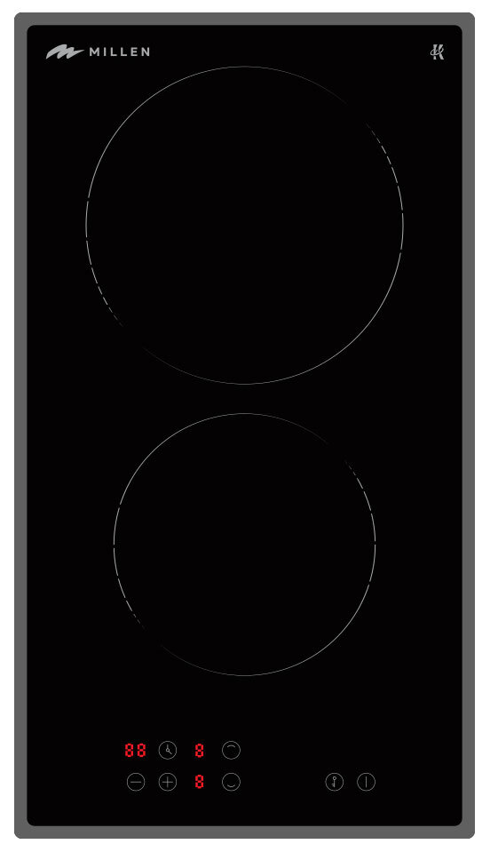 Мощность конфорок: 1200 Вт (∅ 165 мм), 1800 Вт (∅ 200 мм)