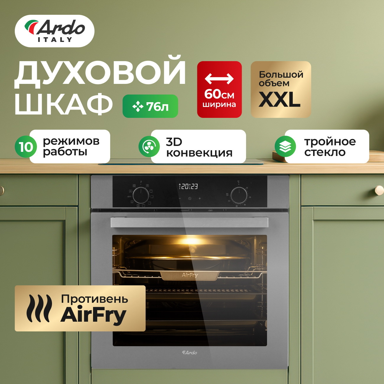 Встраиваемый духовой шкаф Ardo BO410EAS2 - идеальное решение для вашей кухни. С объемом 76 литров и 10 режимами работы, этот духовой шкаф способен удовлетворить все ваши кулинарные потребности. Он оснащен функцией аэрогриля AirFry с технологией Cycle Pro, позволяющей готовить блюда с минимальным количеством масла, обеспечивая при этом хрустящую корочку и насыщенный вкус. Удобство при использовании достигается благодаря телескопическим направляющим, которые позволяют легко извлекать противни и блюда, не беспокоясь о возможных ожогах. Система с петлями, обеспечивающими мягкое закрытие дверцы, добавляет дополнительный комфорт и безопасность во время готовки. Духовой шкаф также предлагает стильные большие утапливаемые ручки, которые не только имеют современный вид, но и облегчают чистку поверхности. Тройное остекление дверцы обеспечивает отличную теплоизоляцию и безопасность, позволяя вам наблюдать за процессом приготовления без необходимости открывать дверцу. Эта модель сочетает в себе функциональность и стиль, что делает ее не только удобным, но и привлекательным дополнением к вашему кухонному пространству.