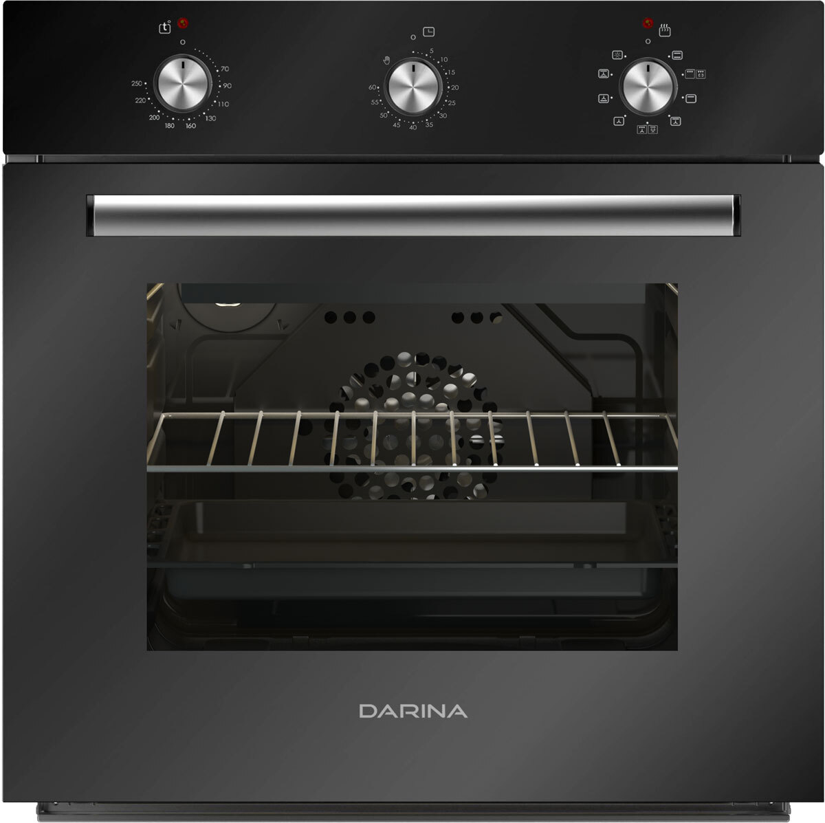 Встраиваемый электрический духовой шкаф DARINA 1U BDE111 707 At выполнен из эмалированной стали цвета антрацит, удобные поворотные ручки управления позволят легко