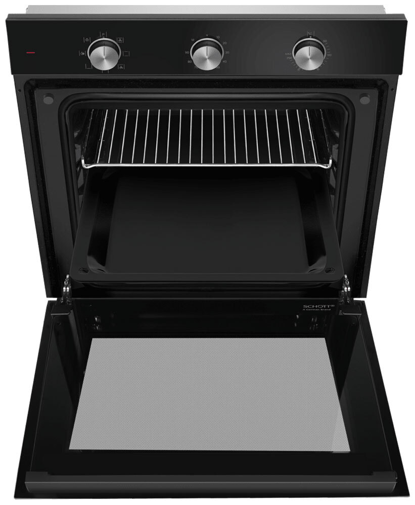 Управлять духовкой просто – механические переключатели с утапливаемыми ручками надежны и интуитивно понятны. Встроенный таймер поможет не пропустить момент готовности блюда. А когда нужно проверить, как идёт процесс, достаточно бросить взгляд через тройное стекло дверцы – мощная подсветка прекрасно освещает всю камеру.