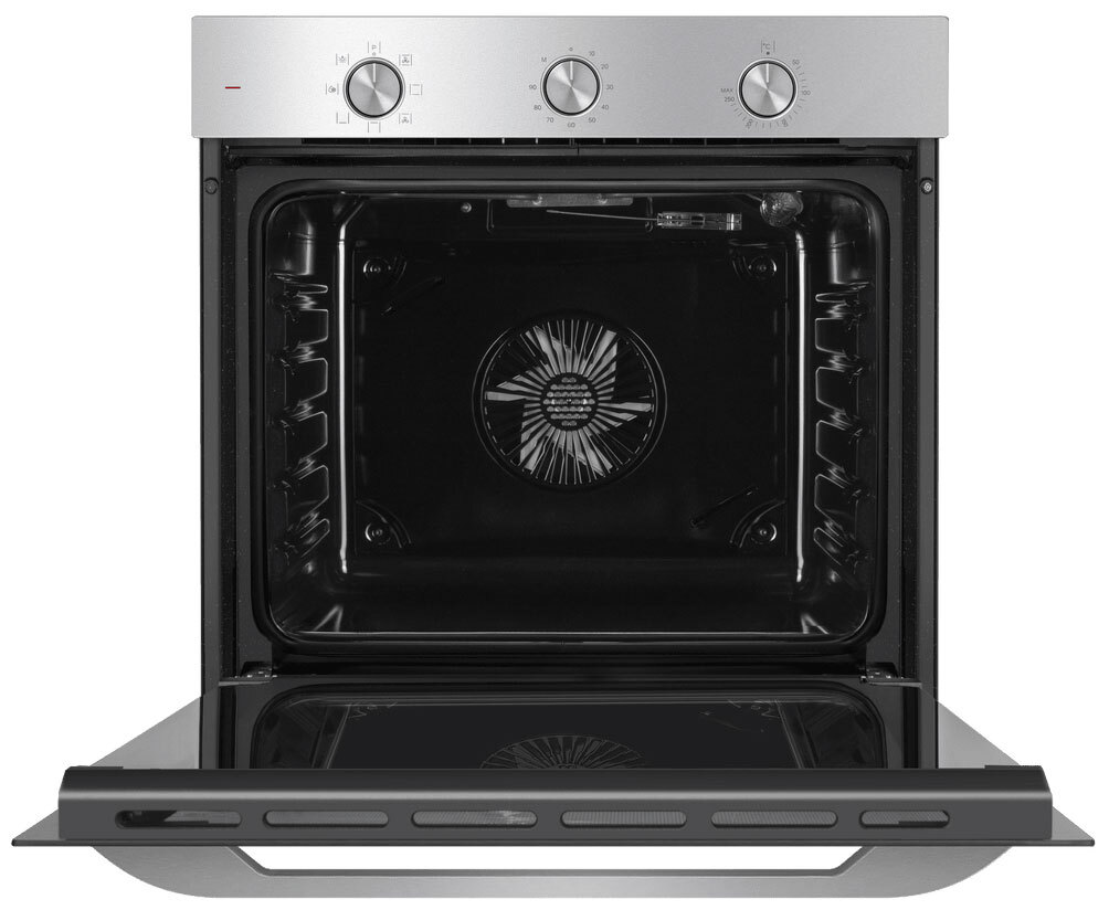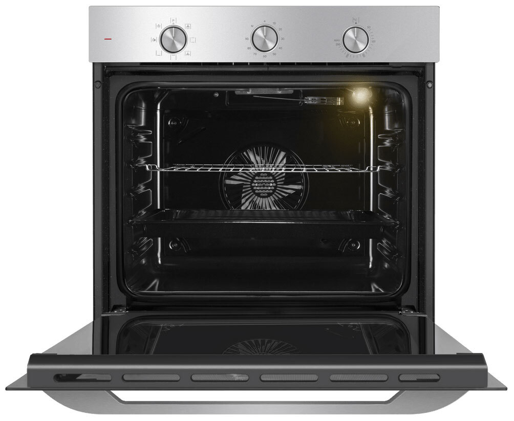 Управлять духовкой просто – механические переключатели с утапливаемыми ручками надежны и интуитивно понятны. Встроенный таймер поможет не пропустить момент готовности блюда. А когда нужно проверить, как идёт процесс, достаточно бросить взгляд через тройное стекло дверцы – мощная подсветка прекрасно освещает всю камеру.