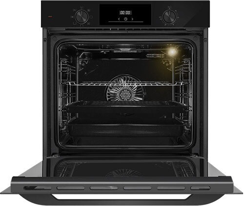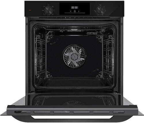 Управлять духовкой просто – механические утапливаемые переключатели в сочетании с современным сенсорным управлением обеспечивают комфортную и наиболее точную регулировку параметров приготовления. Встроенный таймер поможет не пропустить момент готовности блюда. А когда нужно проверить, как идёт процесс, достаточно бросить взгляд через тройное стекло дверцы – мощная подсветка прекрасно освещает всю камеру.