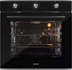 Модель шириной 59,5 см выполнена в современном стиле, имеет фасад из закалённого стекла чёрного цвета. Дверца духового шкафа оснащена тройным съёмным стеклом, что позволяет легко очистить её от жира и копоти. Внутреннее покрытие модели — эмаль лёгкой очистки.