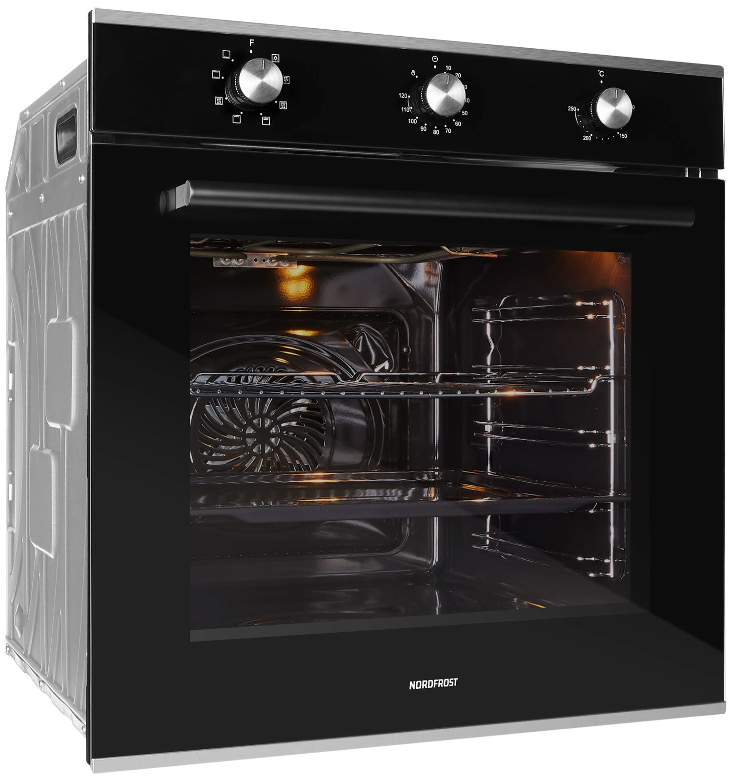 Встраиваемый электрический духовой шкаф NORDFROST HM 6080 B общим объёмом 74 л, режимом конвекции и 8 программами нагрева идеален для создания кулинарных шедевров на вашей кухне.