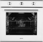 Модель шириной 59,5 см выполнена в современном стиле, имеет фасад из закалённого стекла белого цвета. Дверца духового шкафа оснащена тройным съёмным стеклом, что позволяет легко очистить её от жира и копоти. Внутреннее покрытие модели — эмаль лёгкой очистки.