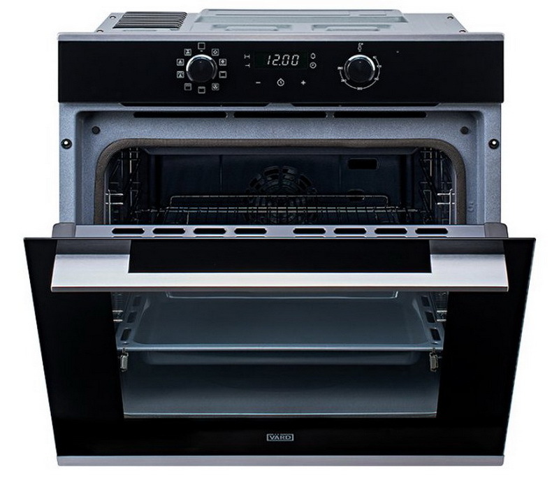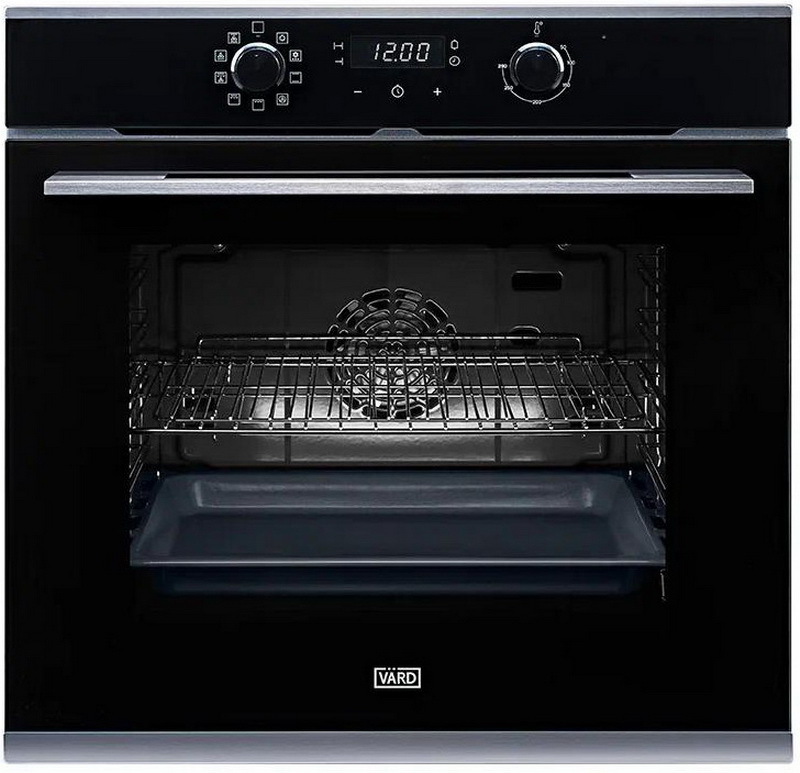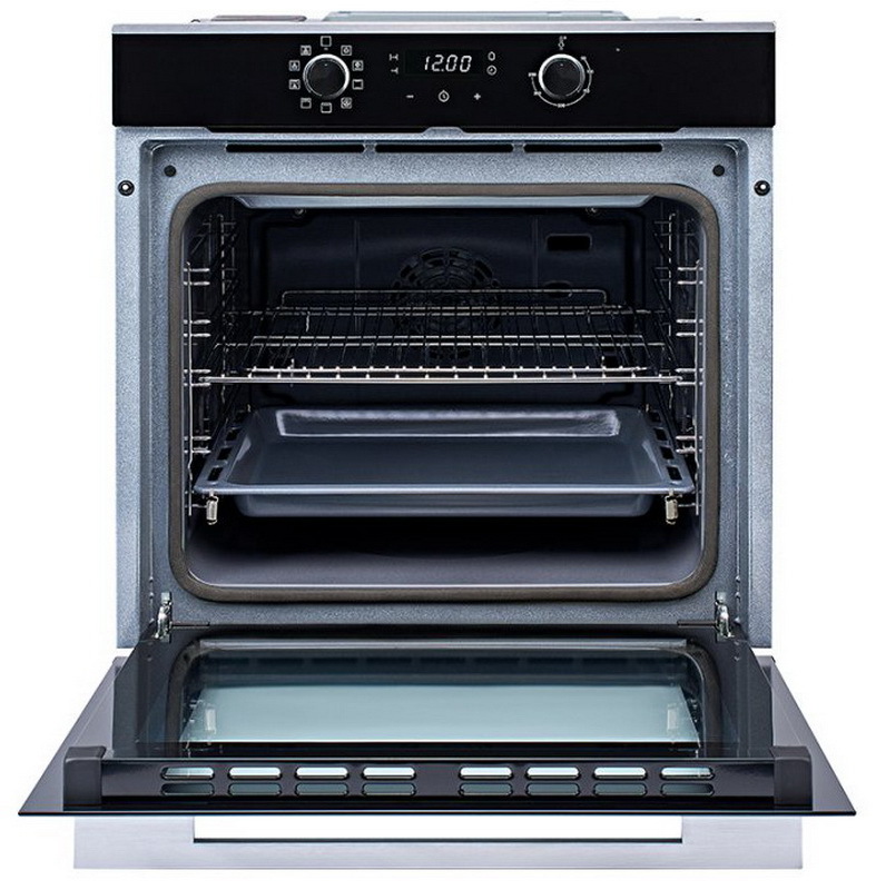 Черный духовой шкаф с металлическими вставками имеет объем камеры 73 литра и 9 режимов работы, что делает его незаменимым помощником на любой современной кухне