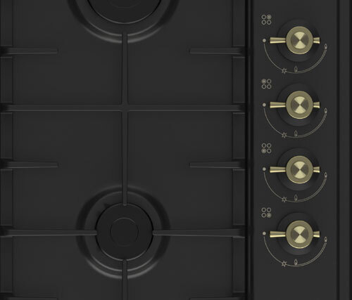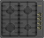 Газовая варочная панель DARINA 1T18 BGM341 11 At из линейки "Provence", панель цвета антрацит выполнена из эмалированной стали, с классическим расположением горелок. Ручки управления в ретро стиле расположены сбоку.