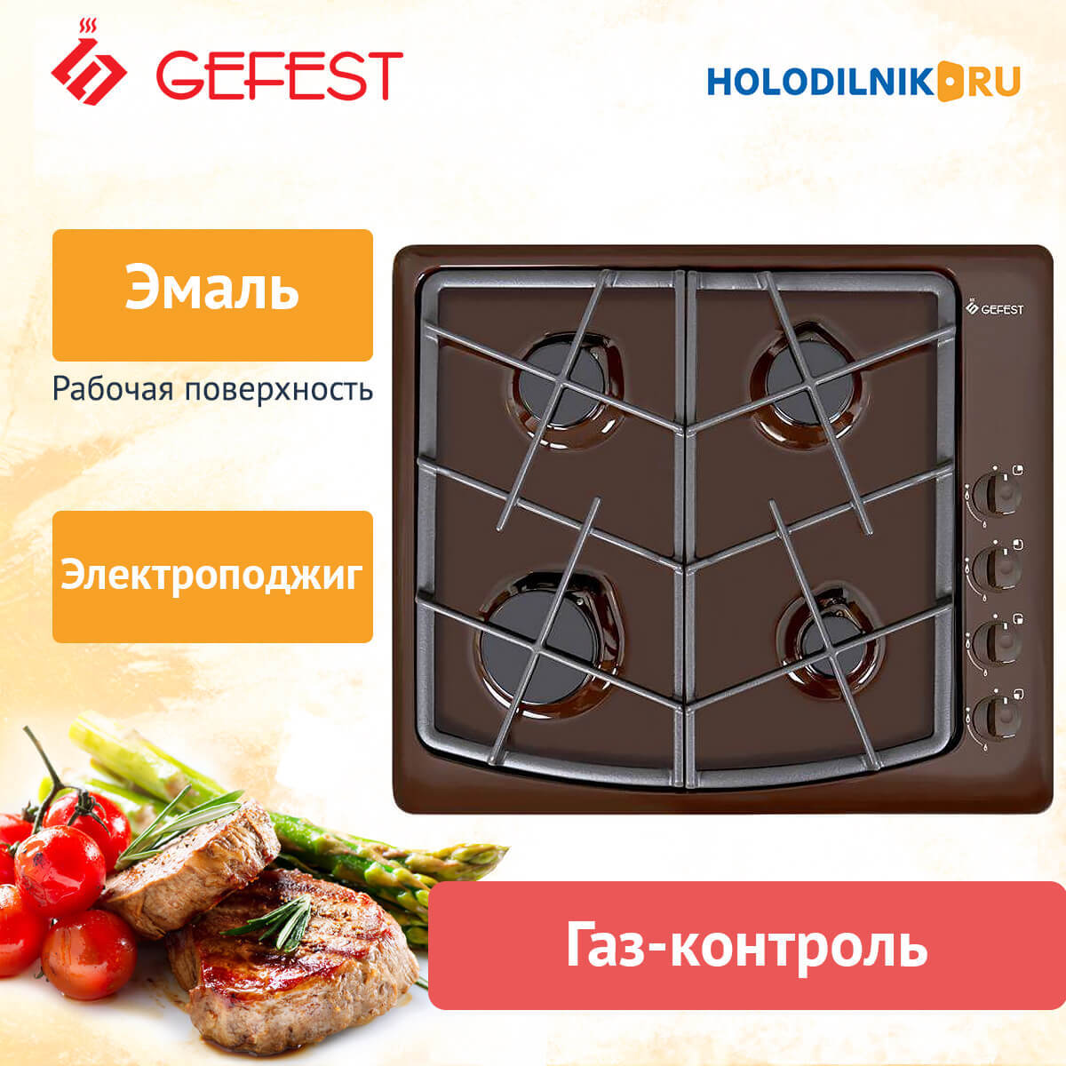 Конфорки: 4 газовые