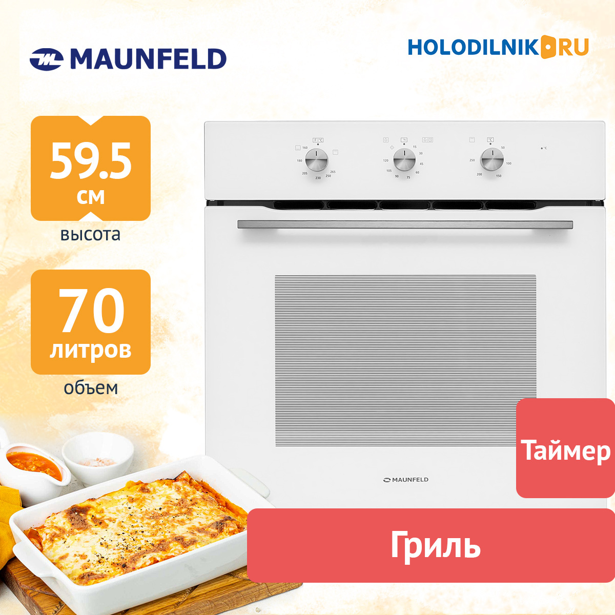 В комплекте: стандартный противень - 1 шт., глубокий противень - 1 шт., универсальная решётка - 1 шт.; 5-ти уровневые направляющие