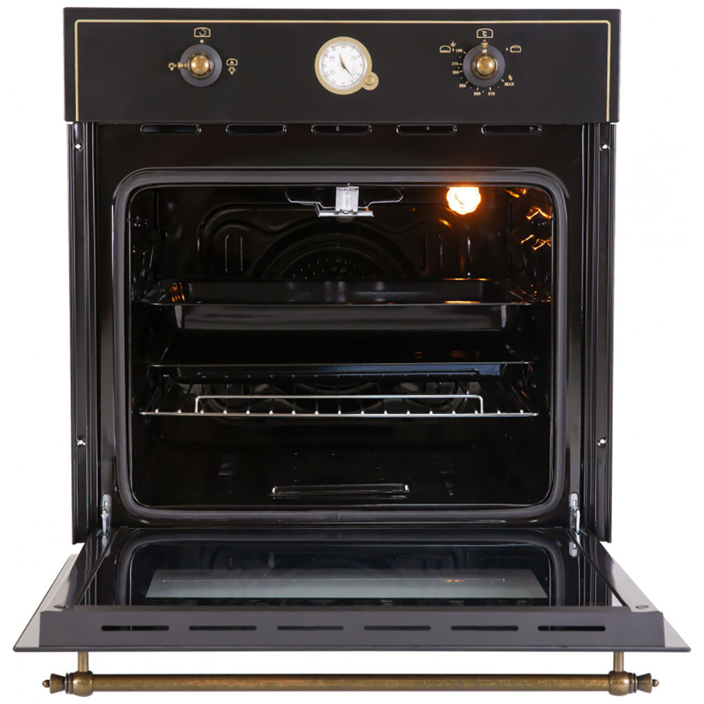 Встраиваемый газовый духовой шкаф DG-606BL чёрного цвета с металлической фурнитурой бронзового цвета прекрасно впишется в интерьер кухни классического стиля, стиля кантри или прованс, а блюда, которые вы сможете приготовить с его помощью для своей семьи, будут радовать вас не только вкусом, но и пользой. Модель MBS DG-607BL может работать в четырех режимах, управление которыми осуществляется удобными ручками. Объем духовки целых 71 литр, а процесс ее очищения происходит посредством гидролизной очистки. MBS DG-606BL комплектуется 2-мя универсальными противнями и решеткой для гриля. При желании вы всегда сможете докупить дополнительный противень, камень для пиццы и комплект телескопических направляющих. Вся кухонная техника бренда MBS соответствует всем современным европейским стандартам, а гарантия производителя составляет 3 года. ВАЖНО: Газовый духовой шкаф устанавливается в пенал кухни с заранее предусмотренной системой вентиляции прибора. Необходимые размеры вентиляционных отверстий указаны в инструкции. Запрещено устанавливать ящик под духовкой. Следует устанавливать декоративную вентиляционную решетку для обеспечения притока/оттока воздуха через нее. Не допускается установка глухой стенки за духовым шкафом. Кухня должна быть изготовлена из материалов, которые предполагают монтаж.