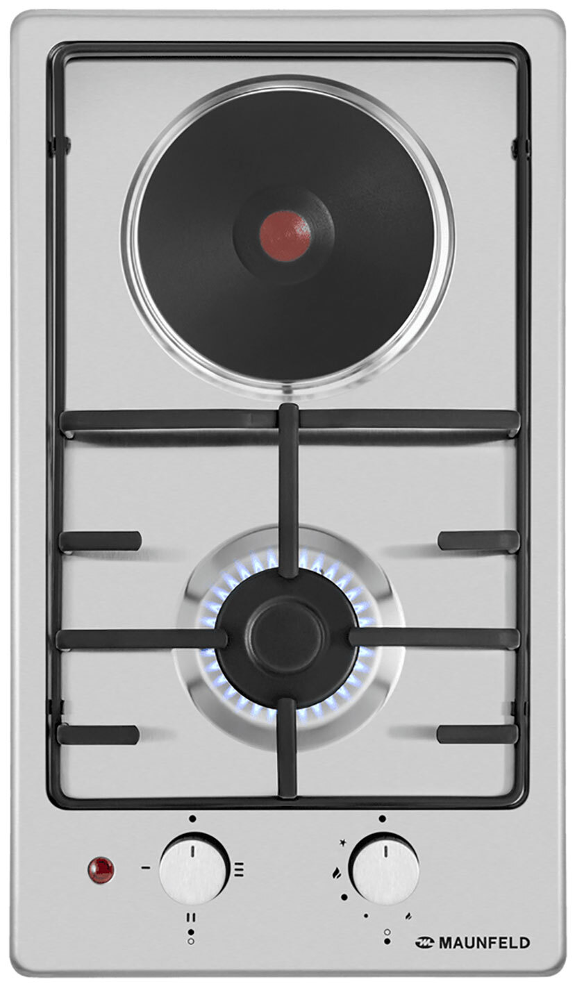 Конфорки: 1 газовая и 1 электрическая чугунная быстрого нагрева (RAPID горелка)