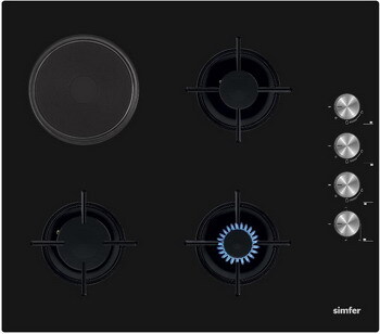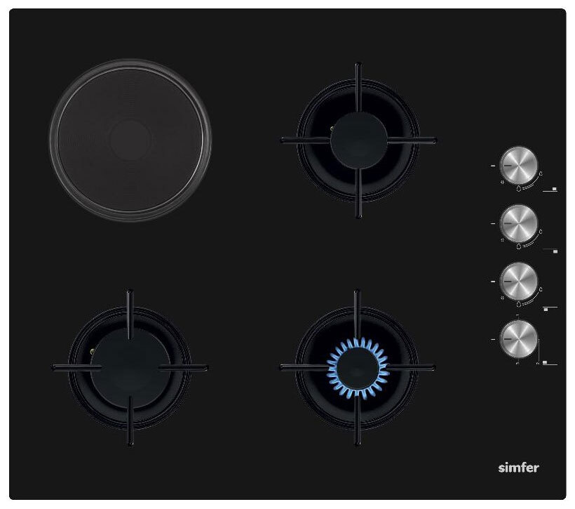 Количество конфорок: 3 газовые + 1 электрическая традиционная 145мм 1500 Вт