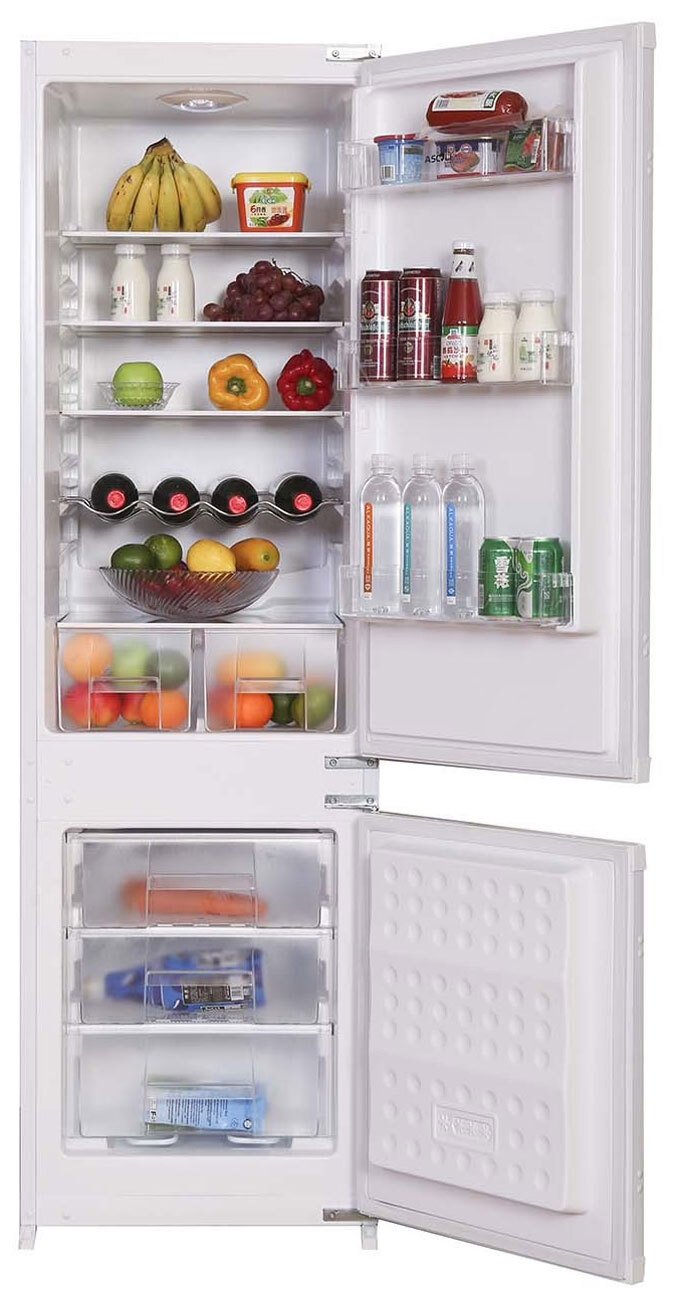 Встраиваемый двухкамерный холодильник с нижним расположением морозильной камеры