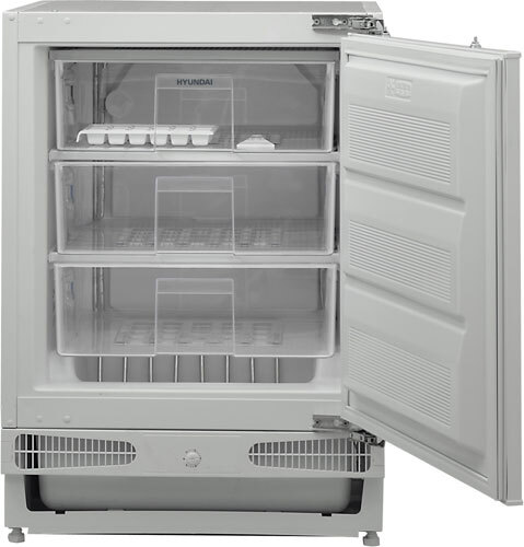 Встраиваемая морозильная камера Hyundai HBF 0810 отличается компактными размерами и прекрасно подходит для установки под столешницу кухонного гарнитура. Классический дизайн и традиционный белый цвет корпуса делают его универсальным для любого интерьера. Вместительная камера объемом 90 литров оборудована тремя выдвижными ящиками. Разморозка осуществляется привычным ручным способом, что гарантирует надежность и долговечность работы прибора. Он и достаточно небольшой по высоте - вровень со стандартной столешницей, что дает определенные бонусы при размещении: его можно использовать как тумбу.