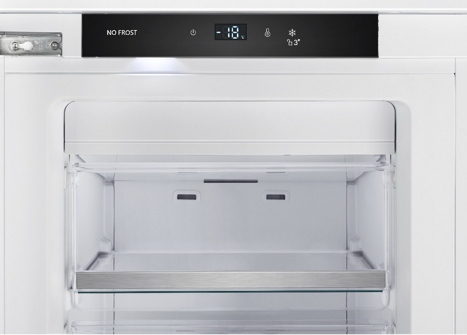 Электронное управление обеспечивает самую точную регулировку и контроль температуры в холодильной и в морозильной камере.