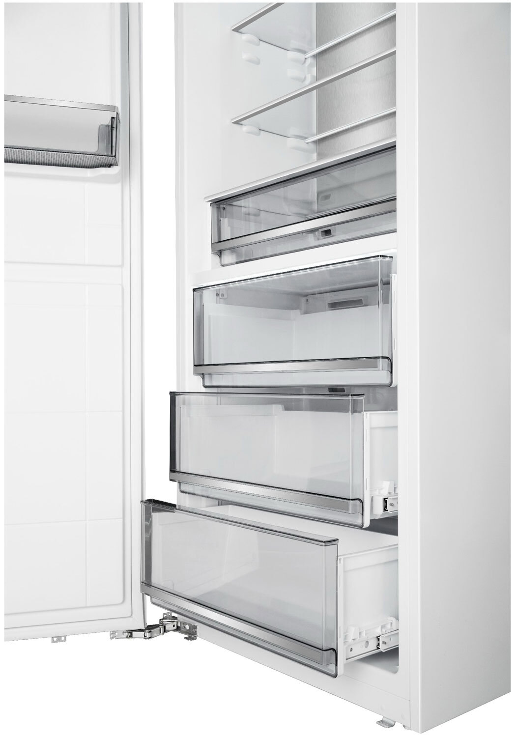 Электронное управление обеспечивает самую точную регулировку и контроль температуры в холодильной и в морозильной камере.