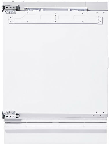 Простая и надёжная система крепления фасада непосредственно на дверь морозильника без применения дополнительных петель и фиксации с каркасом кухонной мебели.