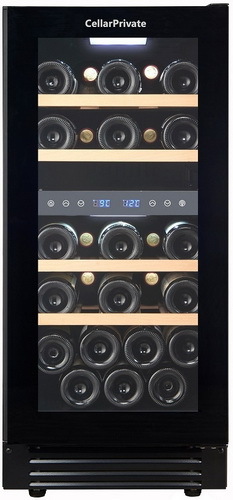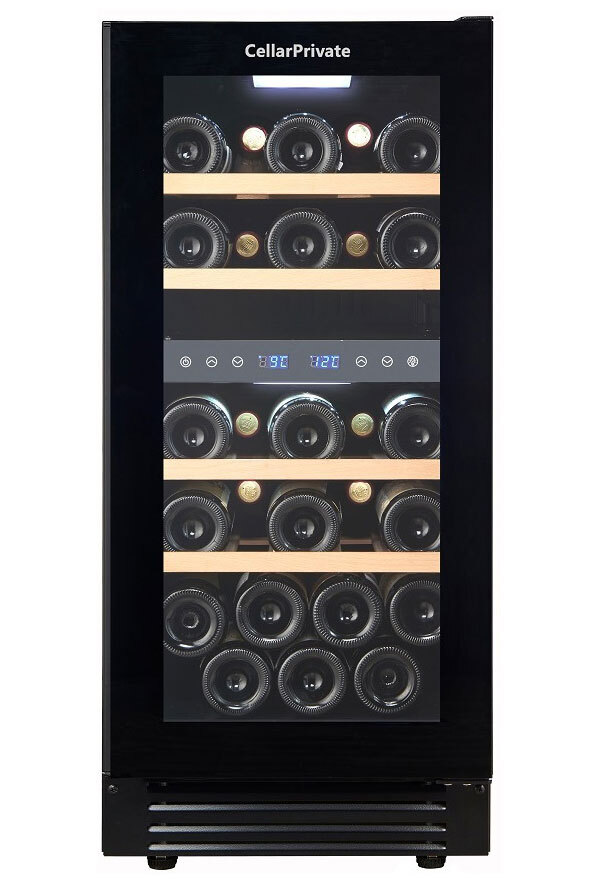 CellarPrivate CP027-2 это двухзонный винный шкаф, вместимостью до 27 бутылок. Температура выставляется в каждой зоне раздельно, что позволяет хранить одновременно красные и белые вина.