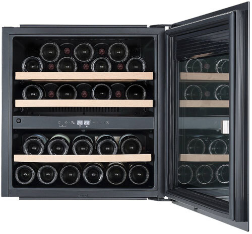 Две зоны для размещения, чтобы подача была по всем правилам: белые вина там, где температура ниже, красные - где выше. Дополнительно можно регулировать температуру в каждой из зон.