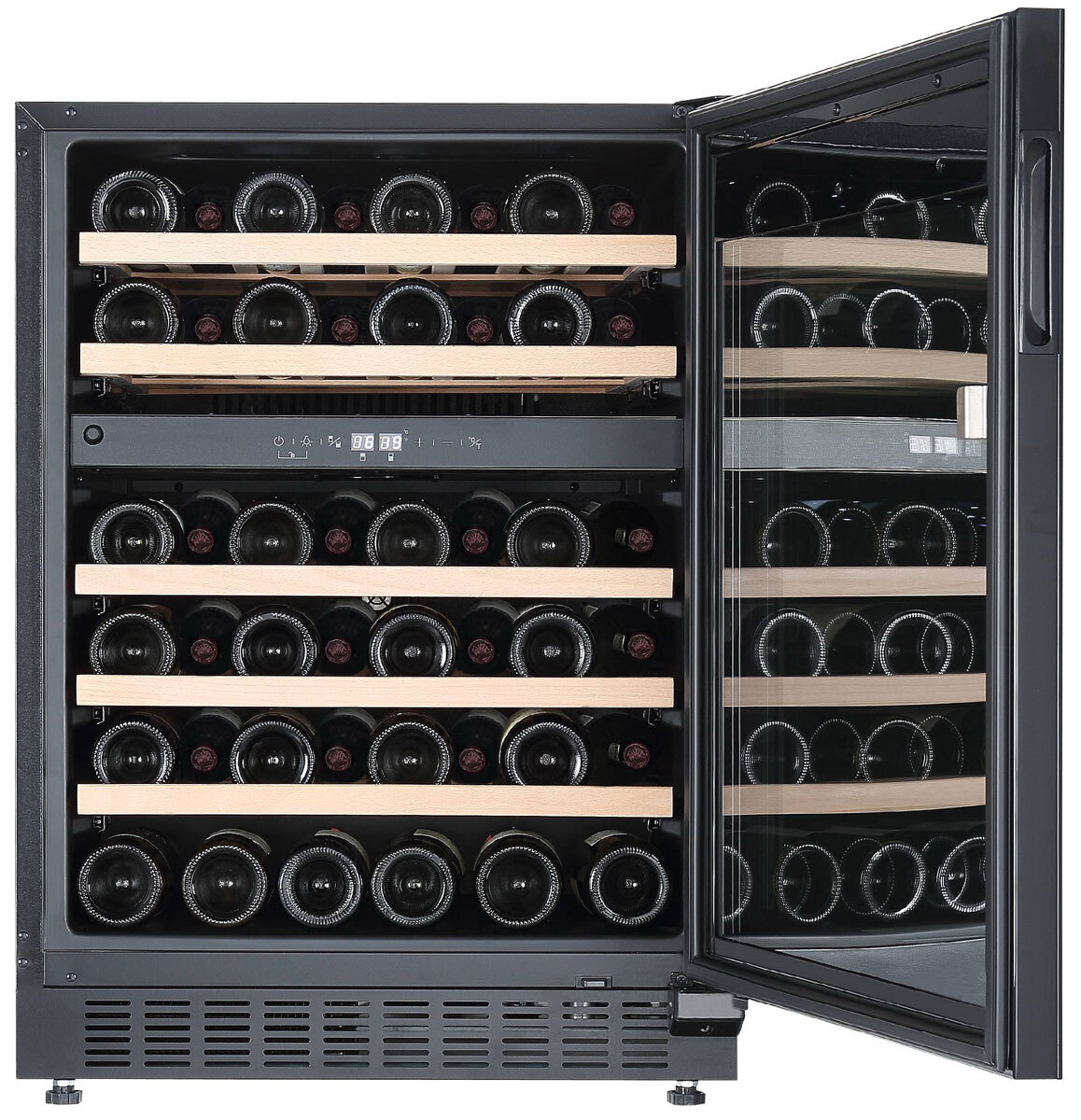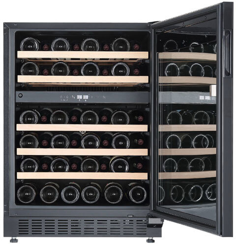 Две зоны для размещения, чтобы подача была по всем правилам: белые вина там, где температура ниже, красные - где выше. Дополнительно можно регулировать температуру в каждой из зон.
